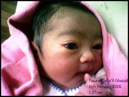 ![]() ![]() .: Thursday, January 25, 2007 :. :: I am Hawra. And today's my turn to blog. Yes..yes..I know I'm just a baby, but thanks to mummy dearest, i now know how to blog. After all, the blog is under my name, hokay! Hmpphh. *smug face* Anyways,..the reason i'm blogging today is because my mummy received emails asking A WHOLE LOT abt me (same questions, different emails, again & again) that she's beginning to get bored answering to the same questions over & over again. Poor Mummy. Tonite I promise I'll be a good girl & sleep early,ok? *angelic face* Well, Mummy, u shud actually be proud of me, okayy? i *think* it's my cuteness that drives anyone who sees my pics mad out of curiosity. Eh? Did i just praised my own self just now?? Heh Heh So, in order to satisfy your curiosity, let me tell u all a bit abt myself. My name is Hawra Kalka'il. My mummy is Haslina, and Daddy's name is Ghazali. I was born on 14th February 2006. No, pls dun call me 'Valentine Baby'. I hate that word hokay! I'm a proud muslimah and refuse to be associated with St. Valentine. however, my mum & dad has reason to celebrate 14th february (apart from my birthday, that is) every year, cos dat's their anniversary. My weight during birth? Not that heavy. I was abt 2.86kg only. My height was 61cm. I am a MyKid holder, which means i am a proud Malaysian, born in Malaysia, at Pusat Perubatan Kohilal in Taman Melawati, Selangor, to be exact. Yes, Dr. Lo'lo' was the 1st one to see me come out from my mummy's tummy. oh here's a pic of me on my 1st day on earth. ![]() So, u can say that my family is a multi-state family. I was born in Selangor, daddy was born in Johor Bahru, and mummy was born in Singapore (yes, she is still a singapore citizen lah! now applying for PR in Malaysia - so slow lah mummy! it's been 6 years since u & daddy got married!) i'm now 11 months old, and will turn 1 next month. ooooh i can't wait!! i heard that mummy & daddy are already planning sumthing special for my birthday!..hmm..i wonder wat it is?? but anything is okay, as long as they don't bring me to Dr Normah's clinic for my jab. I overheard them talking abt it last night. i hate needles!! (yeah, who doesn't? u hate needles too, don't u daddy??) and i have a confession to make here. I AM DADDY'S GIRL. Yes, I really am his girl. Whenever he's around, I always want to be held by him, to be hugged and kissed by him. Whenever he's around, I don't care abt mummy anymore. I don't care what mummy's doing, or where she's at. As long as daddy's with me, I am contented. If he's not around, well, that's a different story. But whenever he's around, I'm always smiling. He is my hero. ![]() See me smile?? I LOVE THIS DADDY OF MINE! Don't be jealous, ok Mummy? I love U too lah *rolls eyes*( soooooo childish! ) Labels: HawraTalks ![]() love as always by zaLin @ 2:27 PM