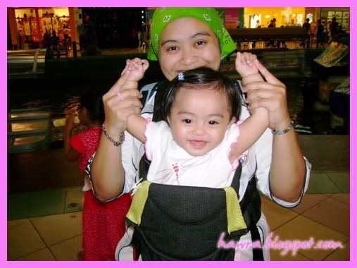 ![]() ![]() .: Wednesday, March 14, 2007 :. :: Okay so now I know how it feels like to be a Mummy Koala. God, the feeling is sooo flattering at one point, but sooo...lemas-ing on the other point of view. As u all may have been told by my dearest Angelic Hawra, we went back to SG for a full 6 days & 5 nites stay at my mum's. And just so u know, Hawra has given to me a whole new meaning of the word "CLINGY" Yes, she practically clinged onto me for 6 days straight without fail. I had to tear myself away from her just so I could go to the loo, but only to hear her wails & cries from inside the toilet while she screamed her heart out in the arms of either her MakTok, her WakAton, or any one of her kuzzens. Sheeeshhhh...Nak pangsai pon tak senang tau! The only 2 people she had no problems mingling with are her cousins Nisreen & Haziq. That is, provided her But wait, come to think of it, she did warmed up to certain people, like her Wak Aton, Wak Ali & Cik Tika..But but but..yes, there's a BUT. But provided, they must bring her jalan2 down the void deck, to the playground, or wherever lah..as long as they bring her for a walk. Hah! Puas hati aku dapat express semuanya hari ni! That rant aside, I got some cute pics of Hawra. ![]() ![]() ![]() ![]() Cute-ness overload! Nee-noo..Nee-noo.. Recently, last weekend, my in-laws came to KL for holiday. They dinch stay at my place dis time, but at cOrus hotel. The kids had fun at the pool, Hawra included. I think my dotter likes the company of kids her age, n not us grown ups. Haizz.. ![]() ![]() ![]() That nite, we went to see The Eye On Malaysia. Ingatkan nak naik, tapi the que, masyaAllah!..panjang nak mampos..Cancelled!! ![]() ![]() ![]() K then, I need to stop now. It's 3++ and I haven't cook anything yet! Tsk3 :p ![]() love as always by zaLin @ 2:24 PM