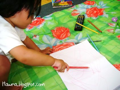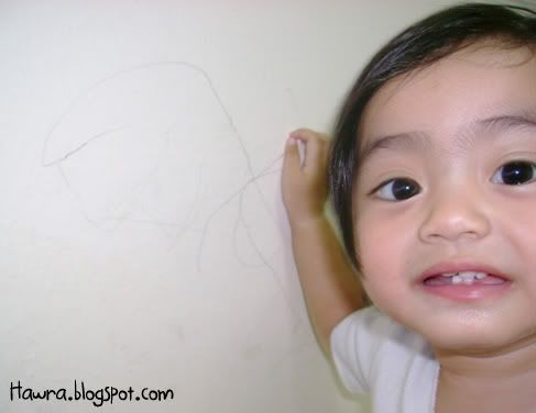 Yup. Artful pencil scribbles, right on my white white pristine wall. Haizzz...