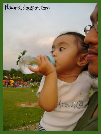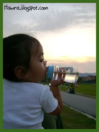 Soon after, I was pooped. And I felt thirsty. Really, reaaaally thirsty. Mumy handed me my bottle of plain water, and I took (more like snatched) it away from her and gulped down greedily.