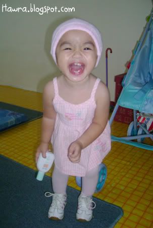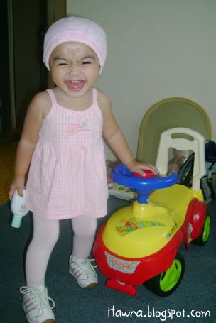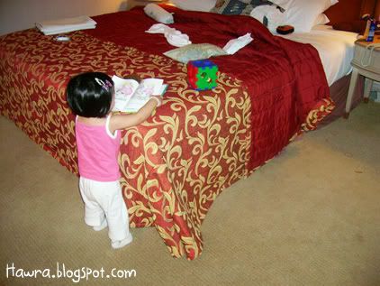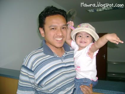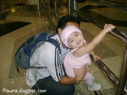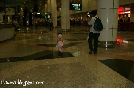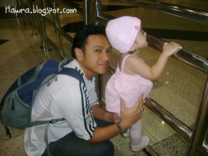 ![]() ![]() .: Friday, August 24, 2007 :. :: Cough..cough.. *blows of dust and cobwebs* Is it just me, or do every SAHMs around the world just lack the time to write a decent entry while coping with house chores and an 18 month toddler who just can't seem to get enough of you? I have no choice but to do some quick updates in this ungodly hours! Sheesh. Hawra turned 18 last 14th August. Like other 18 month old toddlers, she's very good with shape sorters and stackers. She loves playing ball, blocks. No particular favorite toy yet. She just loves 'em all. And she has a really special love with books, which is good, I think. She now knows certain bodyparts like her nose, eyes, ears and belly button. She is also extremely helpful nowadays. That is, when she's in a good mood lah. :) Hm...I wonder where has the time gone to. Seems like she's growing up too fast I'm having troubles letting her go. I want her to stay as a baby forever, can? :p Oh well. We have been away from home sweet home for the past whole week, from 12th till 19th Aug, to be here. Yup, spent the whole week there with SIL and family who came all the way from JB. SIL had to attend a course from monday to thursday, and BIL & the kids followed suit on wednesday. Hawra was of course excited to be among her cousins' company. That little girl of mine is really one friendly babe. On sunday the 12th, we went to fetch SIL at KLIA. But before that..a couple of quick poses before leaving home. ![]() posing dulu, baru boleh jalan, ok Mumy? ![]() Ok, come and hop on my ride! We can go fetch Mak Kin now! We reached there sometime after maghrib. Hawra had so much fun running around, dragging her blankie along, making the cleaners' jobs easier by helping them 'sapu bersih' the floor. :p ![]() Run baby run baby run baby run.. The little girl was in such a good mood to pose for pics..hehe! ![]() ![]() Guess who we bumped into while waiting for SIL's flight arrival? ![]() She seemed more interested in Hawra, though. Hawra, on the other hand, looked otherwise. lol! Sorry lah yer aunty Ella ;) ![]() Mumy ni..enter frame pulak!! syuuuhh..syuuuhh!!! :p ![]() What's taking her so looong? ![]() Are you sure you got the ETA right, Mumy? Turned out the flight was delayed. Pfftttt. On Monday, we checked in Seri Pacific. ![]() tengah holiday pun baca buku.. Rajinnya anak omak! :) The days we spent were pretty much the same. Went to KLCC, window shopping. ![]() pantang jumpa kiddy ride, mesti naik. Hmph. Went to Petrosains. Hawra mengamuk-ed halfway, due to lack of napping. lol! ![]() She didn't seem scared at the sight of this t-rex at all. In fact, she seemed BORED looking at it. Haha! But we did spend a whole lotta deal of time at The Mall, as it is just across the street from where we stayed in. I even bought a new hat for her at Baby Poney's boutique. And we went to IJN a couple of times too, to visit SIL's FIL who just had a bypass. ![]() With Daddy dearest. ![]() So, you like my new hat? :) Ok, I'm done for now. Labels: dates2remember ![]() love as always by zaLin @ 1:05 AM