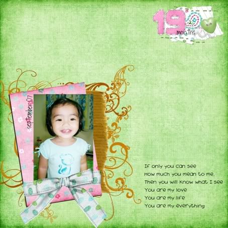 ![]() ![]() .: Wednesday, October 03, 2007 :. :: ![]() I am to be blamed for missing out on Hawra's 19 month update. As much as I wanted to blog on that date, there were other more pressing matters which required my attention. That, and the fact that a few days after 14th september, I actually totally forgot that I haven't done her 19 month update! *slaps forehead* What is wrong with me?! She's not even 2 yet and I already forget to do her monthly updates?! *slaps forehead summore!* The days have been passing by freakingly fast. I haven't had enough of Ramadhan and already Syawal is approaching us at a very alarming speed! I have just done some bling-bling sewing on me & Hawra's baju kurung. Yippee!! And tonight I am going to start on another bling-bling project. Ok, so I digress.. Can't help it mah..raya mood already sinking in! kwakwakwa. Where was I? Oh, Hawra's updates. Riiight. .. .. .. Nothing much really. She's as chatty as ever, loves books, adores her soft toys (which, according to her are all 'gehlllls' like her - including Mr. Garfield. Yep, Garfield has gone girly..lol). She now enjoys adults food as much as we do. Her appetite is better now, alhamduliLlah. No more trying to force feed her. Whenever she sees food, be it on the table, or on the tv screen, she will say, "Nak..Nak..", or "Nyum nyum nyum!!" She likes to brush her teeth, and has 3 toothbrushes to date. It was hard to get her to actually like brushing her teeth at first. It used to be, "Hawra, you want to brush your teeth?", which her answer would be a definite NO NO NO NO NO!!! (siap wags finger tau!!). So, we changed our tactics. We bought another 2 brushes, and whenever she had her bath, the question would be, "Okay, which toothbrush do you wanna use today?" Haha! She loves to sing along the ABC song, Incy wincy spider, and a number of other nursery rhymes. And she also likes Rihanna's Umbrella song, especially the ella-ella-eh-eh-eh part. But hers sound more like, ek-ek-ek. Hehe. Oh, that and Gwen Stefani's sweet Escape, the "Woohoo Woohoo" part. Kekeke! Another song is the Rasa sayang song. She will clap her hands and sway her body while trying to sing along..hihihhih. She still loves mirrors, and loves getting dolled up. But that doesn't mean that she's gone all girly, you know! She still enjoys playing ball. *ada harapan jadi soccer chick la..hehe!* Certain parts of body she recognizes when asked : Eyes, nose, ears, teeth,hands, belly button, head, legs. Favorite word of the month : "Uh-oh" when something goes wrong. I.e, she spills something, boinked her head, tripped, did something wrong. Current fave book : I wanted to be, written by Shirley Jackson, from Ladybird books. - mummy : I wanted to an astronaut..but Mum said.. -Hawra : NOOO! no-no-no-no-no *wags finger*. Numbers : 1 - 10. (but she will NEVER count in front of strangers. apa laaa!) .. .. .. Another couple of days and we'll be leaving for SG to spend the remaining Ramadhan & celebrate raya. Yippeee!! I can't wait! Hawra, get your raya-bag ready baby! We're gonna do some serious collection! Hehe :p Oklah, can't blog much today. I have some BAHARAT to blend, to bring back to SG. p/s : wan, besok yer k lin do ur tag? muahs!! Labels: digiLOs ![]() love as always by zaLin @ 1:47 PM