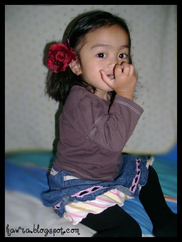 Mommy told me that you are soooo missing me. I miss you too, but I'm having so much fun here in Singapore..teeehehe~ Alah...just a few days away from me, you don't miss me that bad, do you? *angelface* Mommy told me that you're coming here tonight to fetch me & Mommy, right? Alah...I was just about to hang out with the hot chick,Ooyah and her adorable mama, Aunty Fadelinah tomorrow. Habis la my plans to do catwalk with her...hmphh! Well, it's not like we're never, ever, gonna come back here, ever again, kan? We are coming back here, right, Mommy? I wanna go to the ZOO!!!!! *big smile*